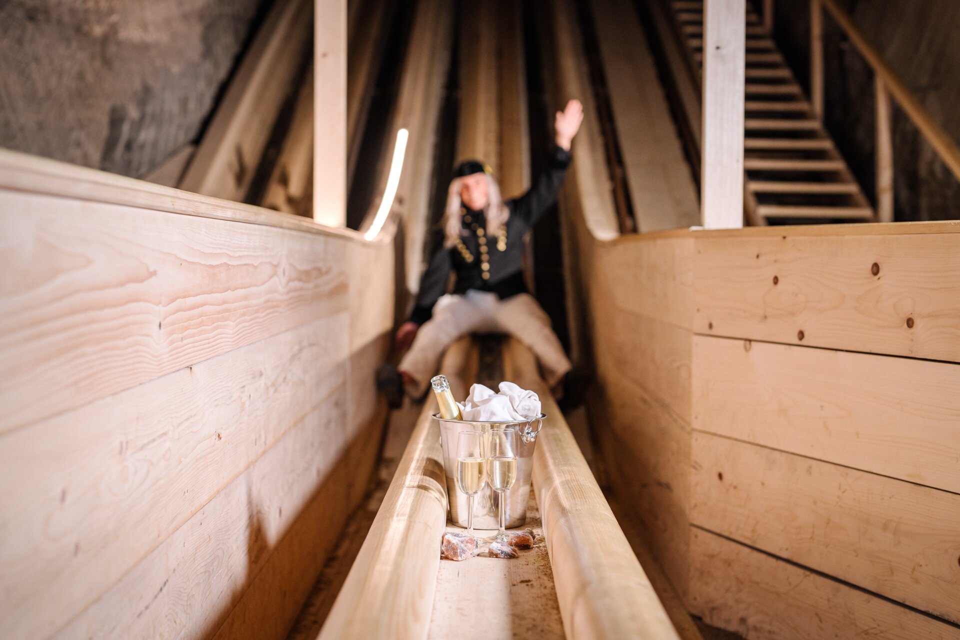 Rasant saust du über die Bergmannsrutschen ins neue Jahr 2025 – Glas Sekt und Glücksbringer aus den Tiefen des Salzbergs inklusive!